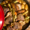 - Κλείνουμε τη γάστρα με καπάκι και ψήνουμε στο φούρνο για 4 ώρες.